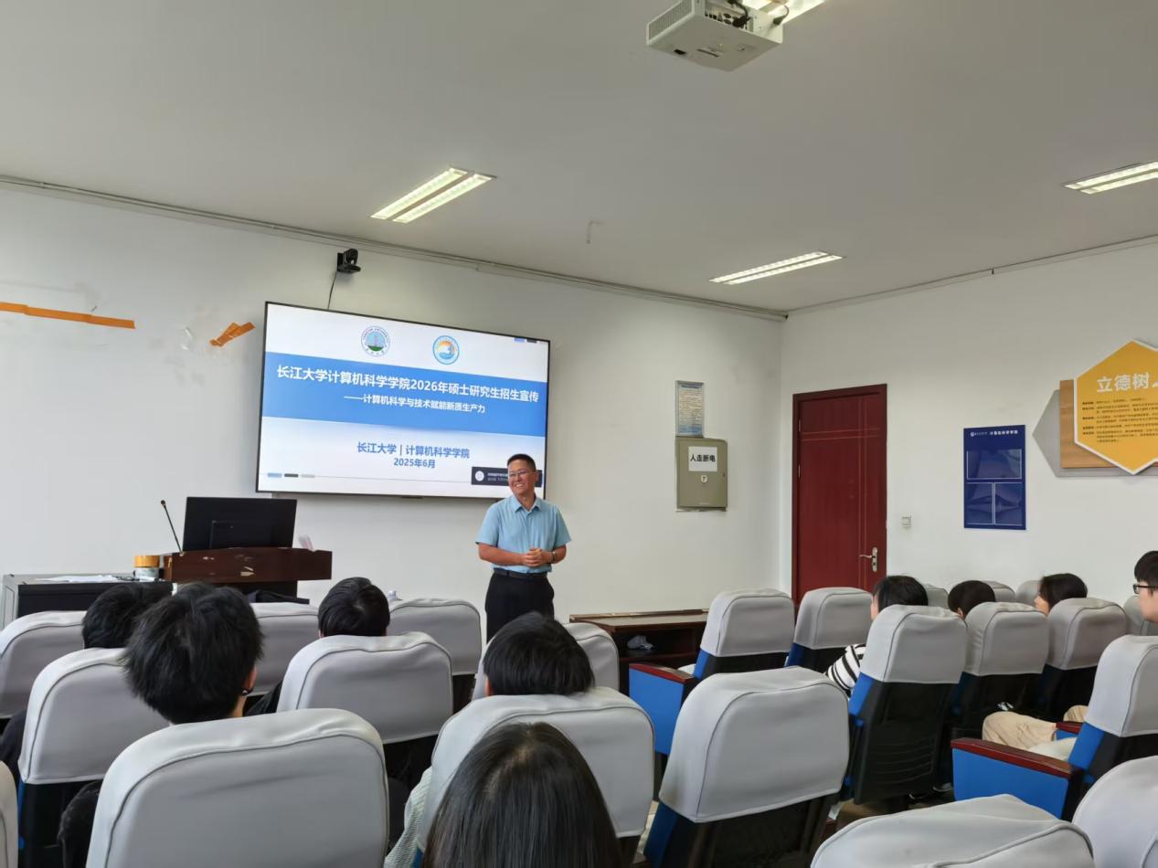 9月23日下午,刘波涛副院长在西南石油大学计算机与软件学院明理楼B306对2026届本科学生做了研究生招生宣讲会。刘波涛副院长介绍了长江大学和学院的发展历程、师资、学科建设、研招资讯等基本情况,并就学生关注的问题进行了一一解答。