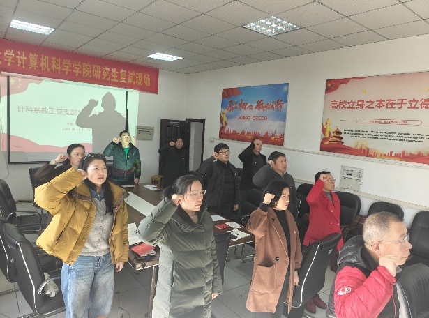 为深入学习贯彻党的二十届四中全会精神,促进党建与育人工作融合,11月20日,计科系教工党支部以“深学全会精神 勇担育人使命”为主题,开展本月支部主题党日活动。 活动伊始,全体党员在曾凡军老师带领下重温入党誓词,由李鹏老师领学《中国共产党章程》第一章。随后,党支部按程序表决通过预备党员张玉繁老师的转正事宜。 活动中,张凯老师结合指导学生获“挑战杯”国家级二等奖的经历,讲授“以学铸魂、以学增智、以学正风、以学促干”微党课。他围绕坚定信仰、科技报国、文化传承与育人实践,分享如何将全会精神融入教学科研,引发广泛共鸣。 在理论学习与研讨环节,支部党员集中学习习近平总书记重要讲话、全会公报及上级会议精神,并立足计算机专业特点,就如何将全会精神转化为育人动力展开深入交流。 本次活动深化了党员对全会精神的理解,增强了育人使命感和责任感。大家表示,将进一步强化理论学习和履职能力,践行“为党育人、为国育才”初心,为学院与学校发展贡献力量。 (审核 郑健 编辑 王桃群)